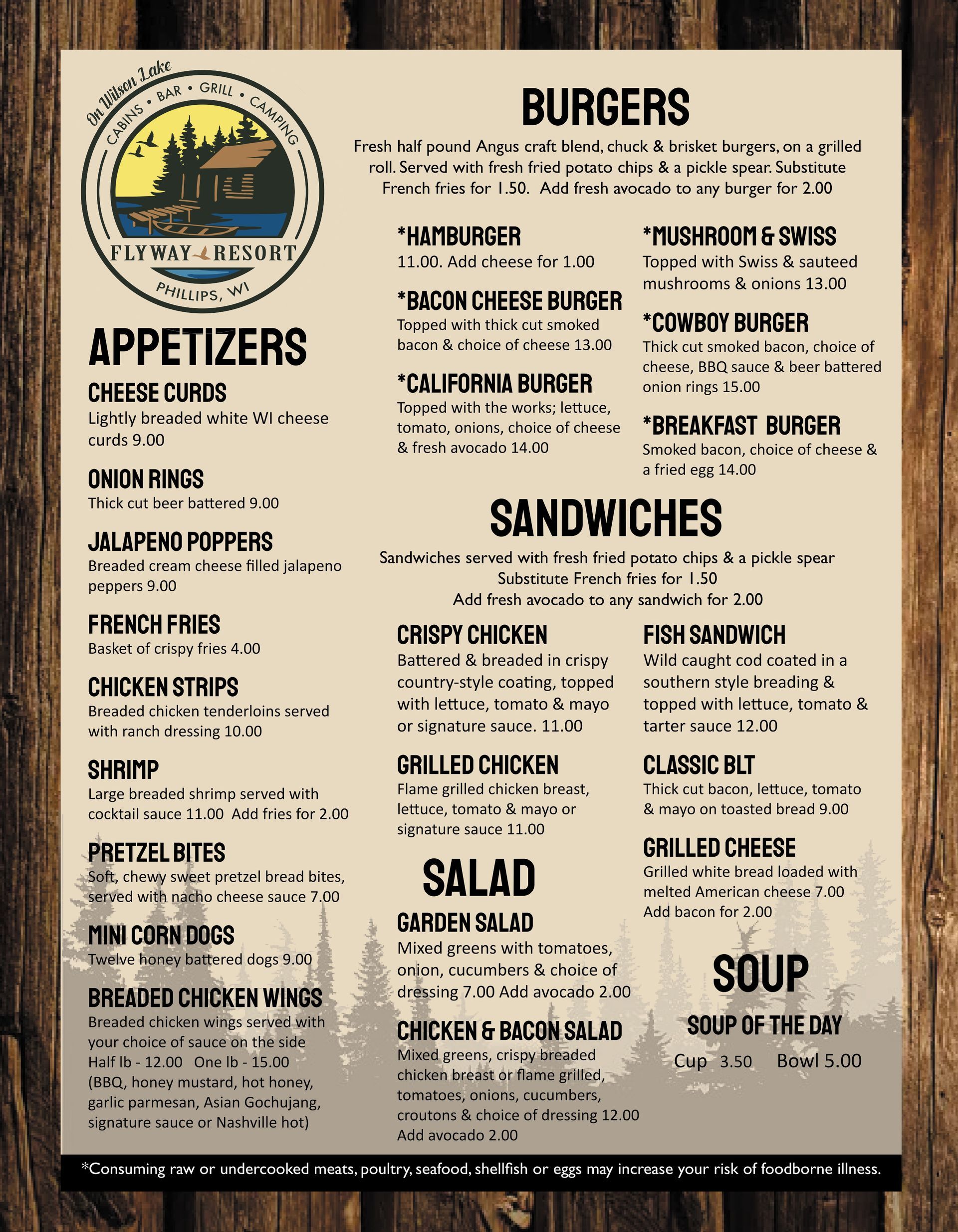 At Flyway Resort, your experience is about so much more than just the breathtaking beauty of Wilson Lake and the surrounding forests. Our dedication to helping you create the perfect vacation extends to our on-site Bar & Grill.